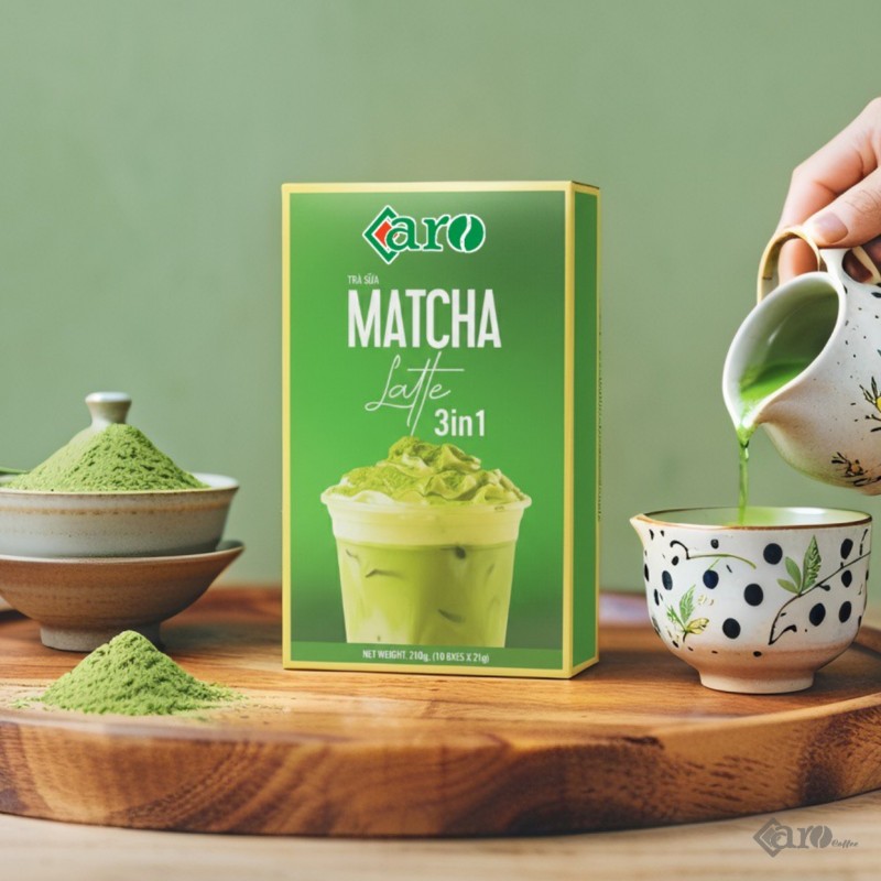Caro Matcha Latte 3in1 – Hòa quyện vị matcha thanh mát và sữa béo mịn, mang đến trải nghiệm thư giãn, dịu êm trong từng ngụm.